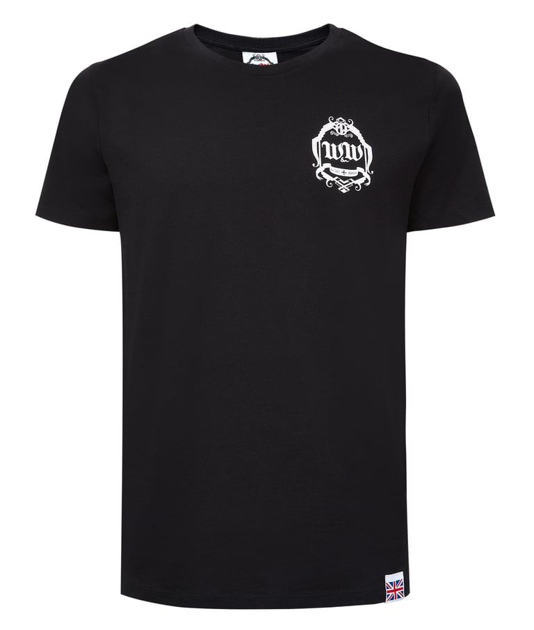 The Wadsworth & Wells Crest Print is screen printed on the front of the t-shirt.